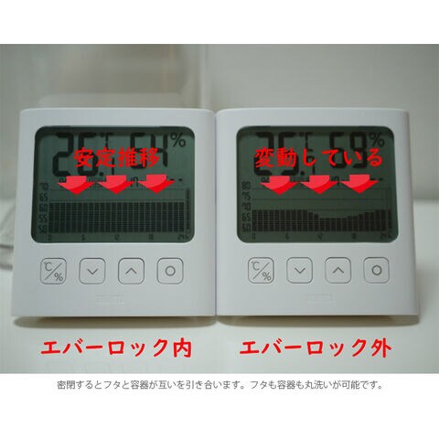 こちらは、隙間を閉じて保存する密閉保存容器「エバーロック」2.4L容量サイズ。