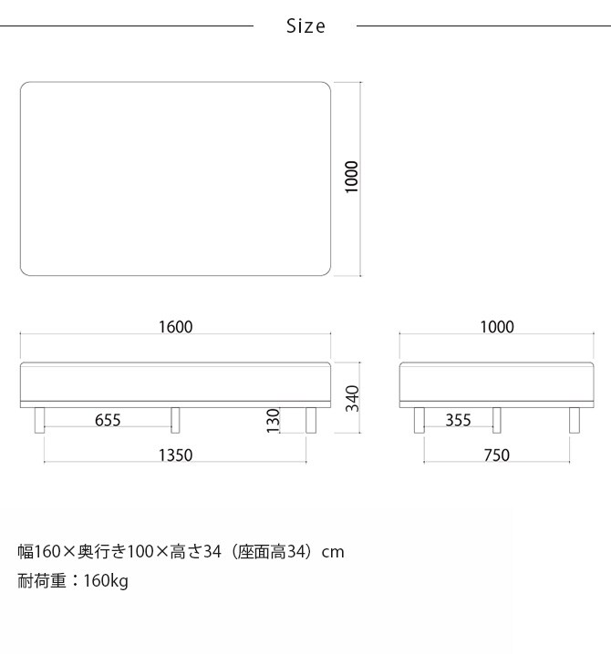 ■商品サイズ:幅160×奥行き100×高さ34(座面高34)cm