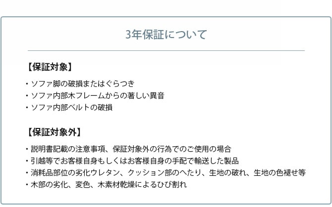 内部構造:木枠、ウェービングベルト、ウレタンフォーム、フェザー、シリコンフィル