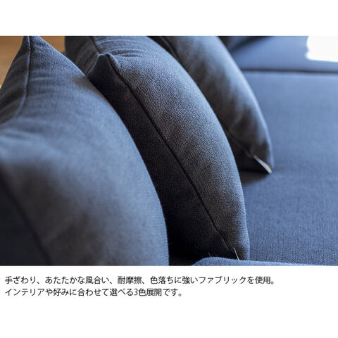 ・手ざわり、あたたかな風合い、耐摩擦、色落ちに強いファブリックを使用。インテリアテイストや好みに合わせて選べる3色展開です。