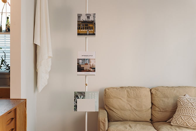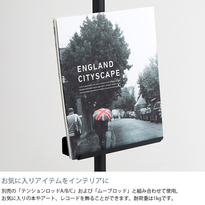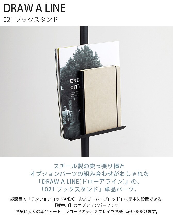 ■備考:スチール製の突っ張り棒とオプションパーツの組み合わせがおしゃれな『DRAW A LINE(ドローアライン)』の、「021 ブックスタンド」単品パーツ。