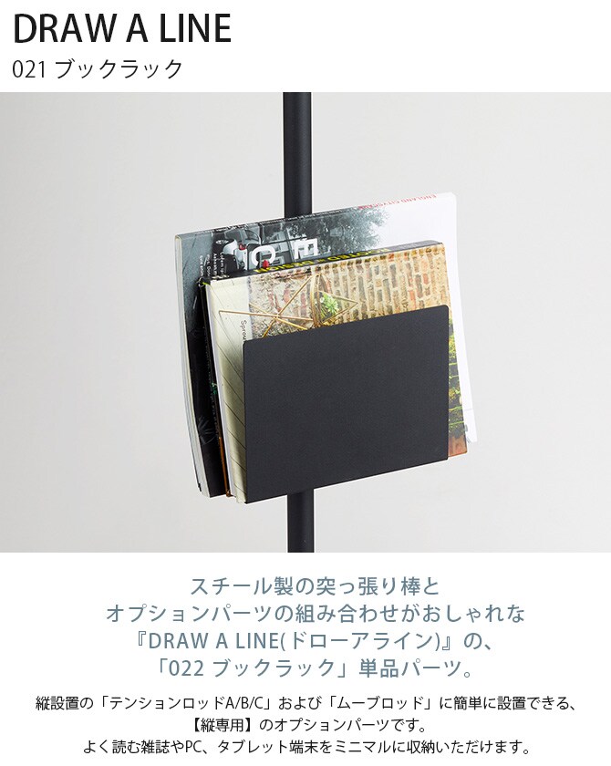ドローアライン DRAW A LINE 021 ブックラック  つっぱり棒 突っ張り棒 ブックラック タブレット おしゃれ モノトーン 北欧 アイアン ツヤ消し インテリア