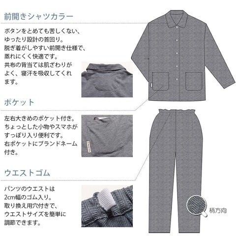 Fab the Home ファブザホーム レディースパジャマ ヘリンボーンニット フェザーグレー L