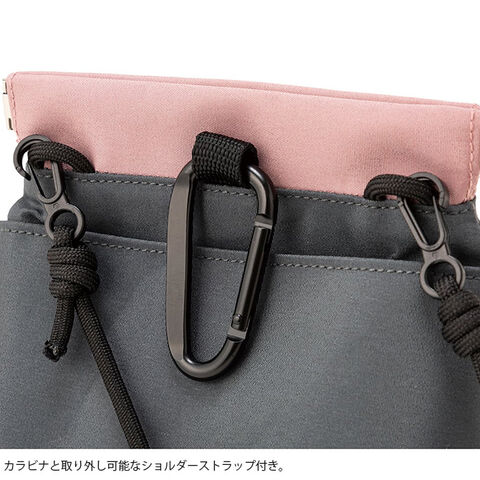 ショルダーストラップとカラビナ付きで、シーンに合わせて使い分けができます。