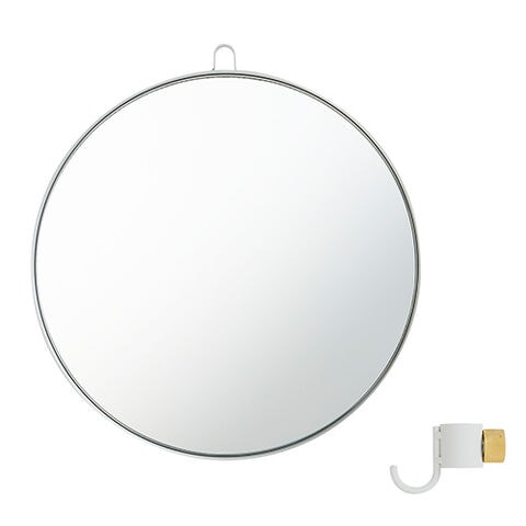 縁が細めの圧迫感のない円形デザイン。顔周りをチェックするのに十分なサイズ感です。(ミラーサイズ直径23.6cm)
