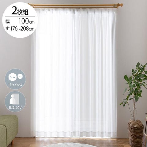 抗ウイルス レースカーテン プレーン 2枚入り 幅100×丈176~208cm 丈208cm 幅100cm