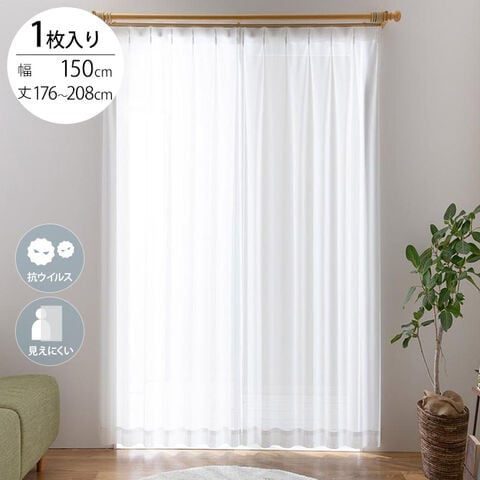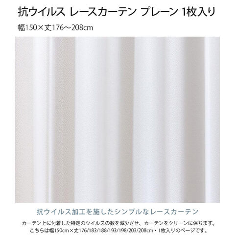 抗ウイルス レースカーテン プレーン 1枚入り 幅150×丈176~208cm 丈203cm 幅150cm