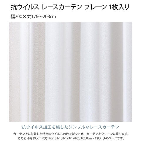 抗ウイルス レースカーテン プレーン 1枚入り 幅200×丈176~208cm 丈208cm 幅200cm