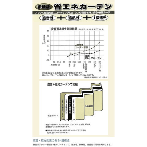 ■備考:「遮音性」「遮熱性」「1級遮光」の3機能を兼ね備えたドレープカーテン。