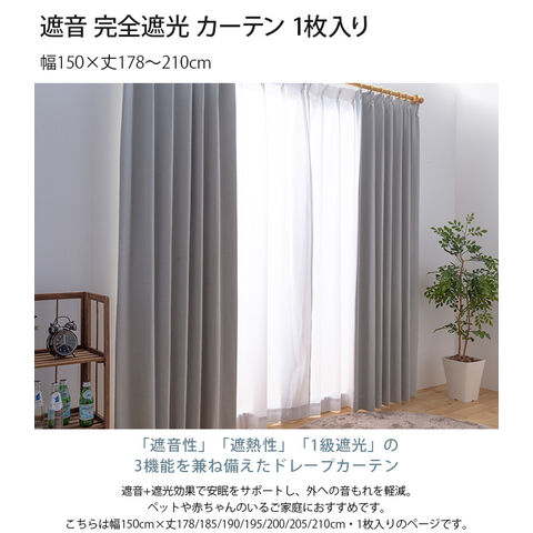 遮音 完全遮光 カーテン 1枚入り 幅150×丈178~210cm ベージュ 丈205cm
