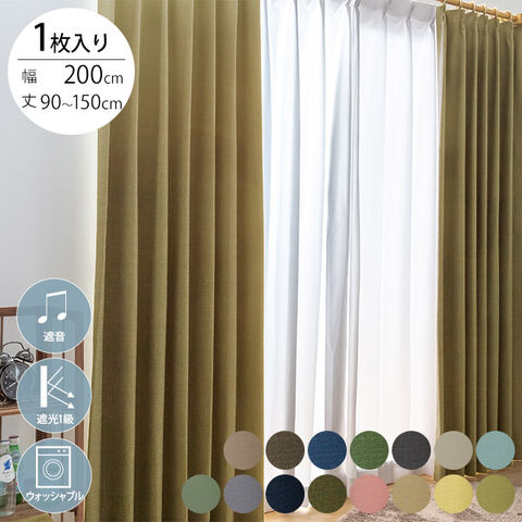 遮音 完全遮光 カーテン 1枚入り 幅200×丈90~150cm ベージュ 丈90cm