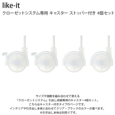 like-it ライクイット クローゼットシステム専用 キャスター ストッパー付き 4個セット クリア