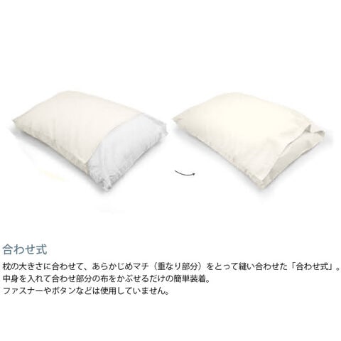 枕の大きさに合わせて、あらかじめマチ(重なり部分)をとって縫い合わせた「合わせ式」。