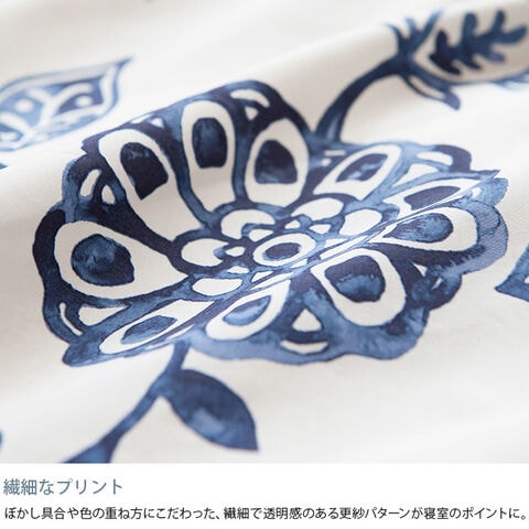 ぼかし具合や色の重ね方にこだわった繊細な更紗プリントが印象的。