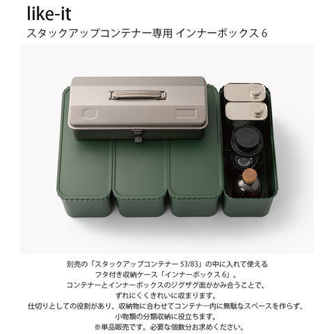 ■備考:別売の「スタックアップコンテナー 53/83」の中に入れて使えるフタ付き収納ケース「インナーボックス 6」。