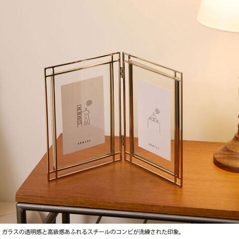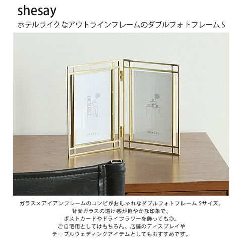 shesay シセイ ホテルライクなアウトラインフレームのダブルフォトフレーム S ゴールド