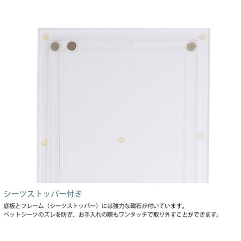 ペットシーツのズレを防ぎ、お手入れの際もワンタッチで取り外すことができます。