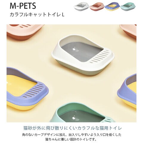 M-PETS エムペッツ カラフルキャットトイレ L ホワイト&グレー