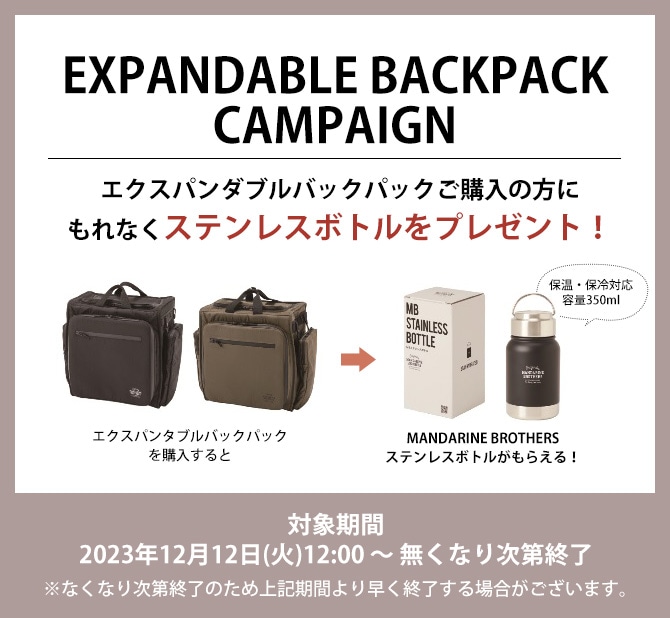 MANDARINE BROTHERS マンダリンブラザーズ エクスパンダブルバックパック カーキ
