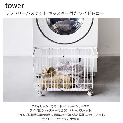tower タワー ランドリーバスケット キャスター付き ワイド&ロー ホワイト