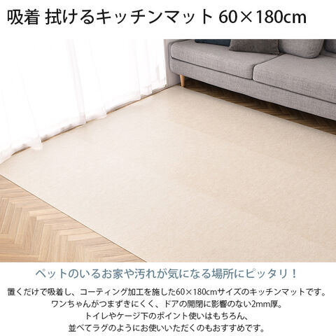 置くだけで吸着し、コーティング加工を施した60×180cmサイズのキッチンマットです。