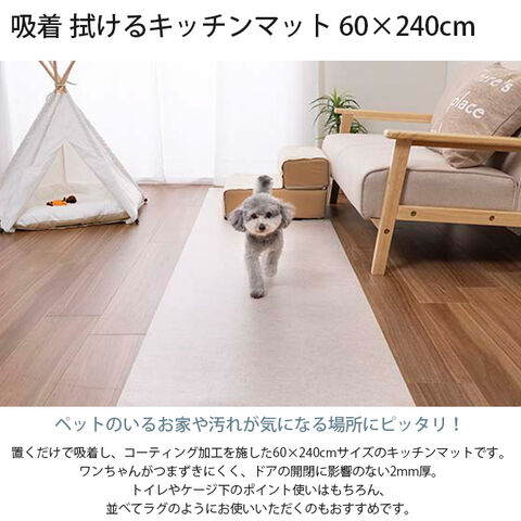 吸着 拭けるキッチンマット 60×240cm ベージュ