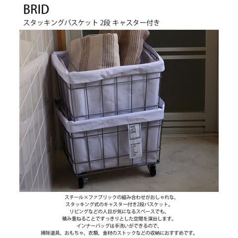 BRID ブリッド スタッキングバスケット 2段 キャスター付き  ワイヤーバスケット スタッキング キャスター おしゃれ 2段 収納 布 スチール かご カゴ