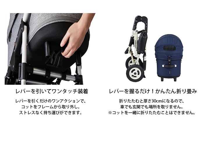 製品ご購入日より2年間(本体フレーム)/1年間(コット)の製品保証付き