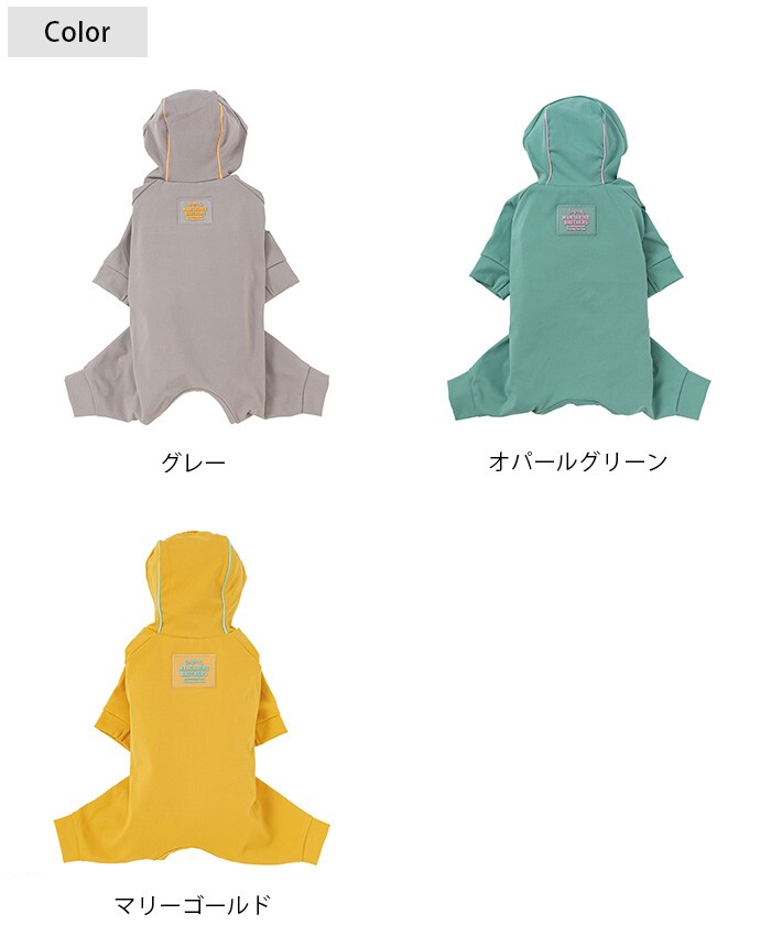 MANDARINE BROTHERS マンダリンブラザーズウォーターリペレントスキンタイトスーツ WATER REPELLENT SKINTIGHT SHIT 犬 服 つなぎ 撥水 フーディ (GRAY, M)