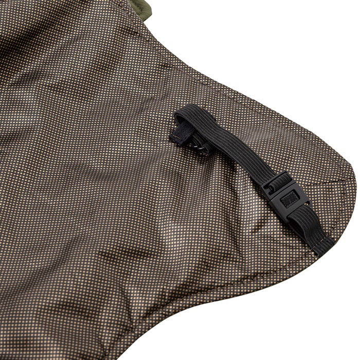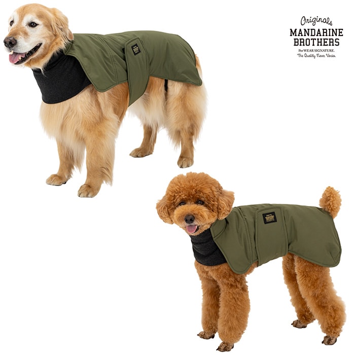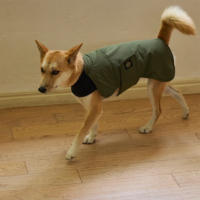 保温効果のある裏地で温かさをキープできる、ふんわり中綿入りの犬用ジャケット。