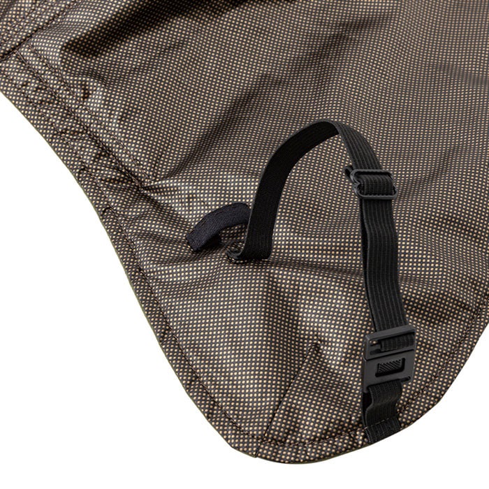 頭を通してお腹を着脱テープで留めるだけの軽くて着せやすいアウターです。