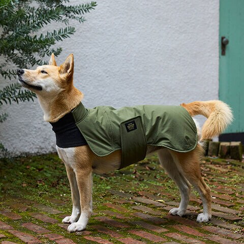 頭を通してお腹を着脱テープで留めるだけの軽くて着せやすいアウターです。