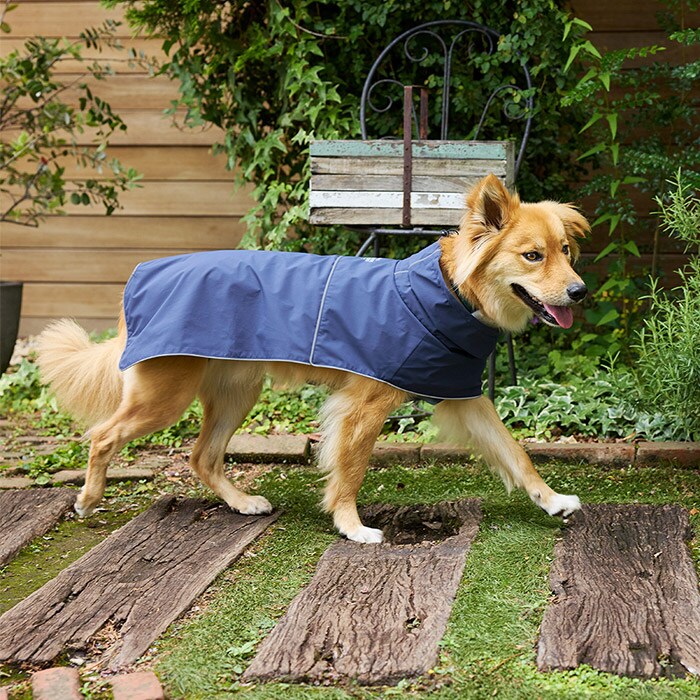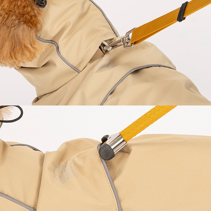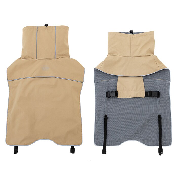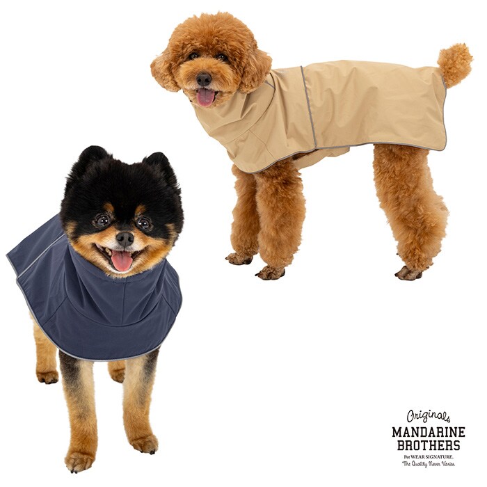 頭から被ってお腹を留めるだけ!脚付きが苦手なワンちゃんのためのレインウェア。