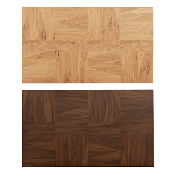 幾何学模様に貼り合わせた木目天板がポイントに。突板を使用しており、天然木のあたたかみと品質の安定を両立しています。