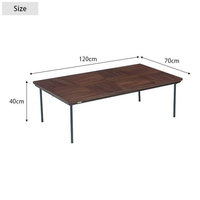 木目天板×スチール脚がスタイリッシュな幅120cmの長方形こたつテーブル。