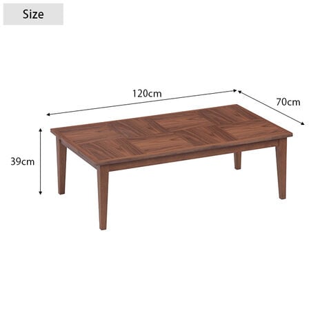 木目を生かしたモザイク調天板がおしゃれな幅120cmの長方形こたつテーブル。