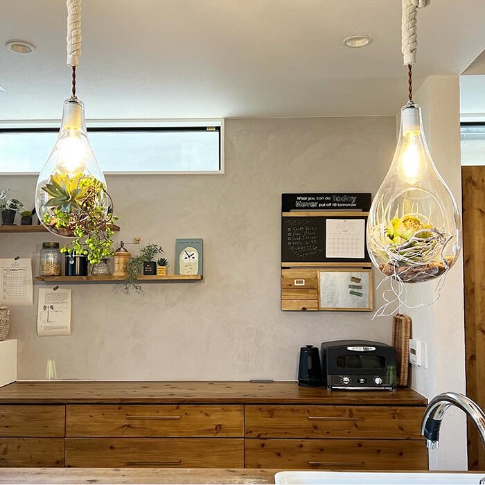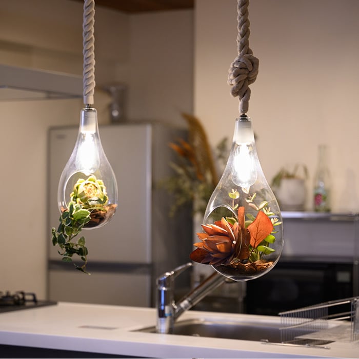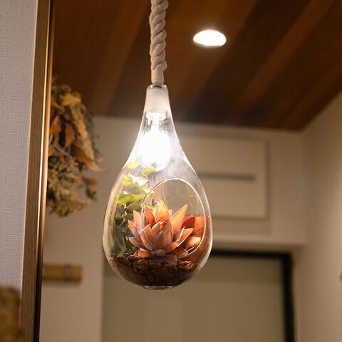 ペンダントタイプなので、グリーンを置きたくてもスペースがない場所に照明兼用で設置可能。