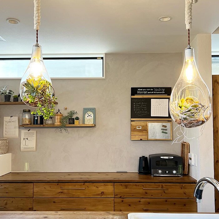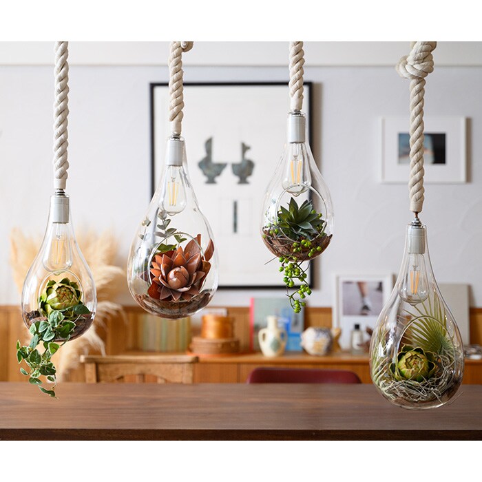 ペンダントタイプなので、グリーンを置きたくてもスペースがない場所に照明兼用で設置可能。