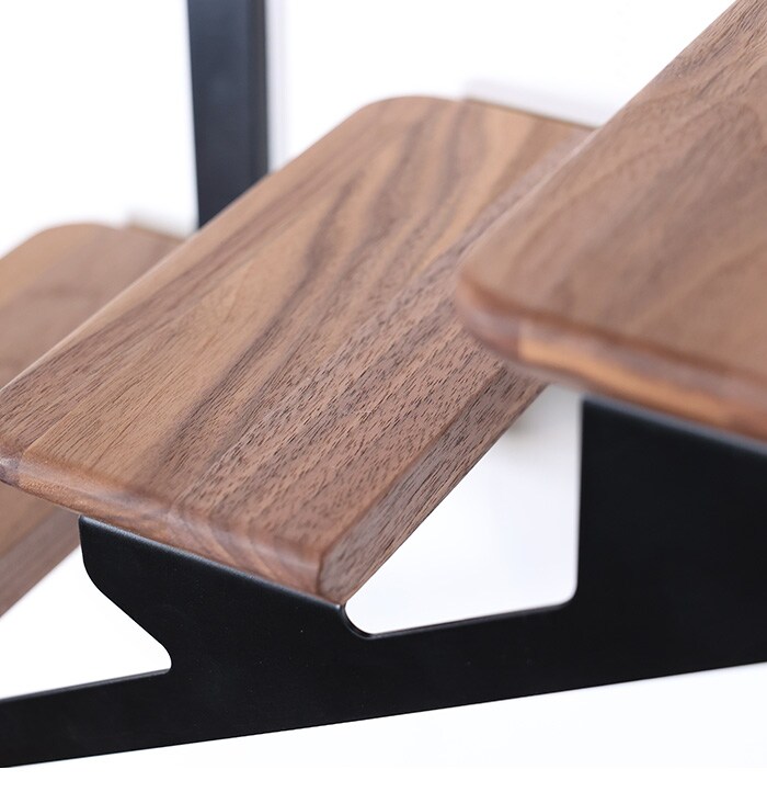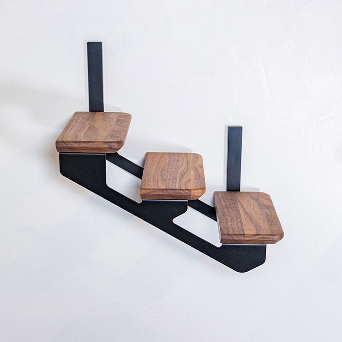 ウォールナットの木材とブラックの金具を使用した落ち着いたデザインです。