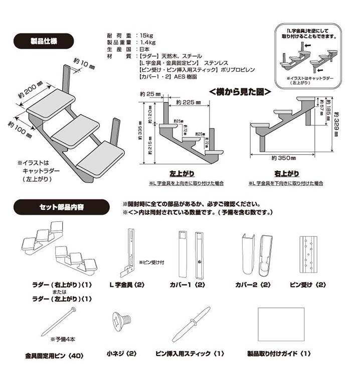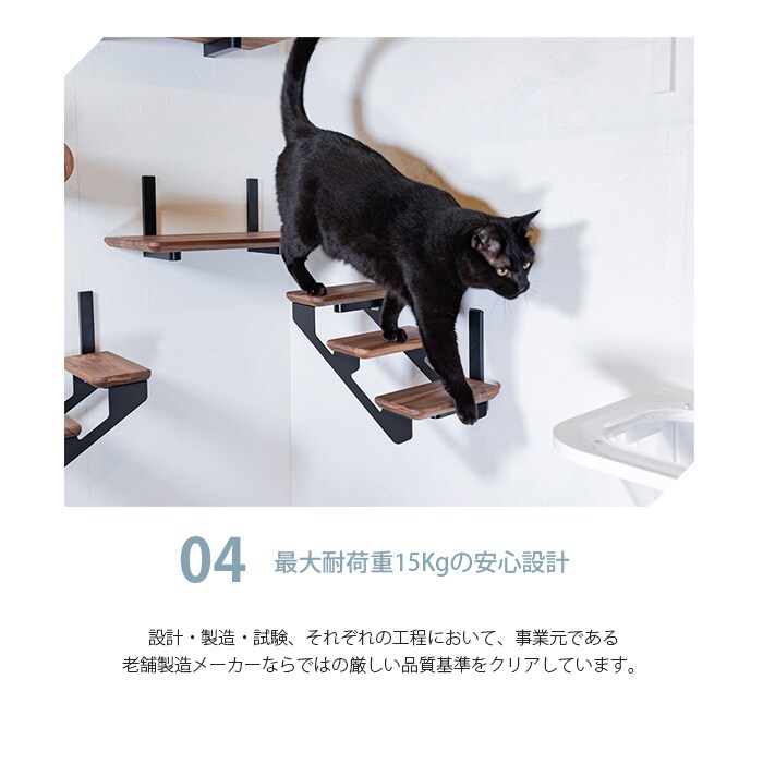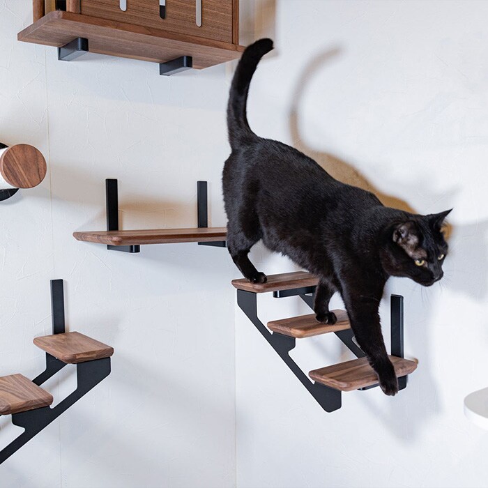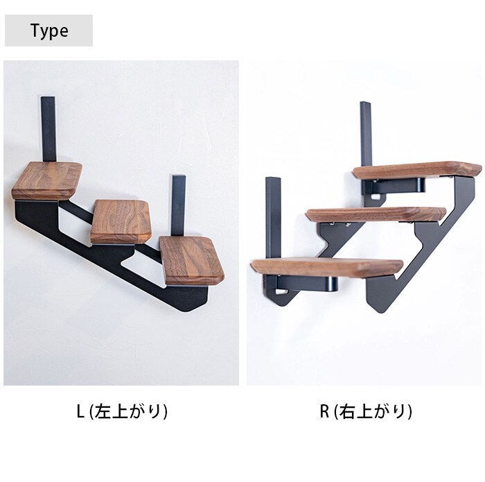 上り下りのしやすい階段型で子猫やシニア猫ちゃんにもおすすめです。左上がり、右上がりお好きな方をお選びいただけます。