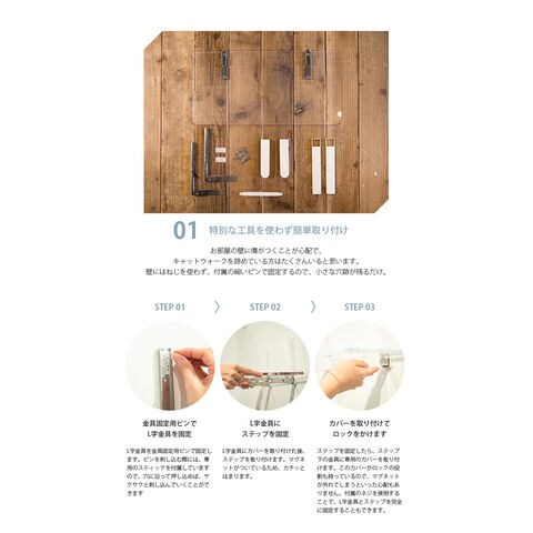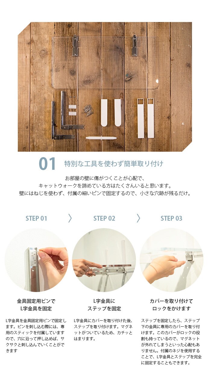 石膏ボードの壁に取り付け可能な階段型キャットステップ