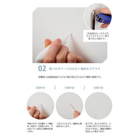 小さなピンを複数差し込んで取付けるため賃貸でもお使いいただけます。