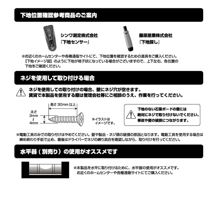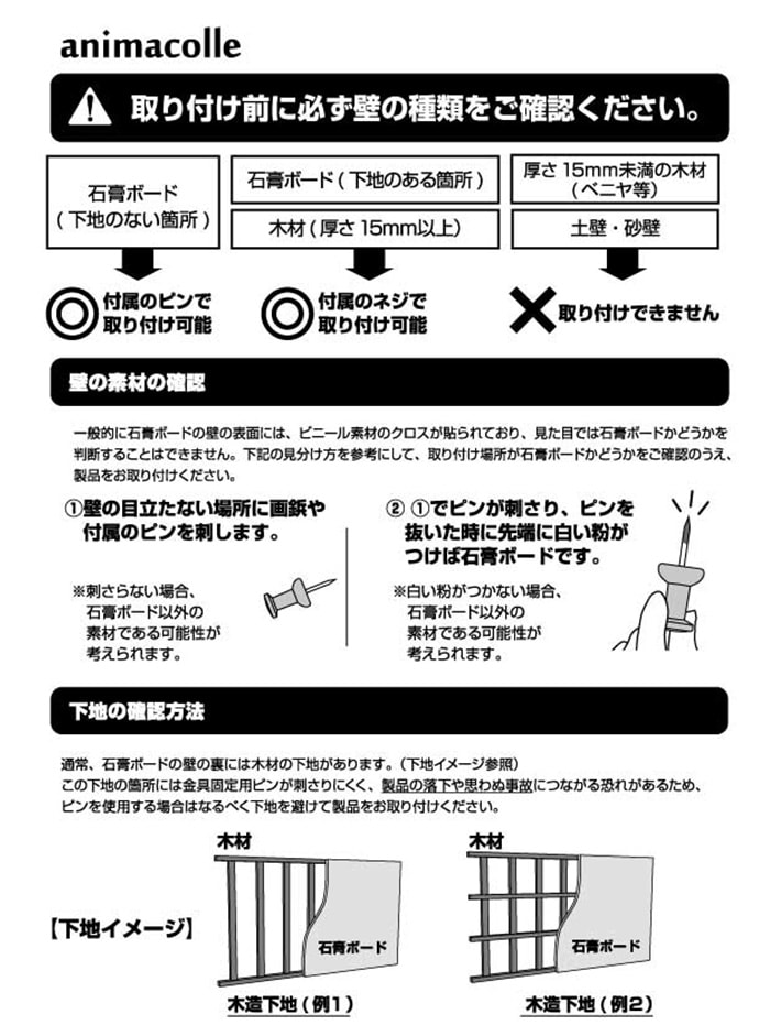 小さなピンを複数差し込んで取付けるため賃貸でもお使いいただけます。
