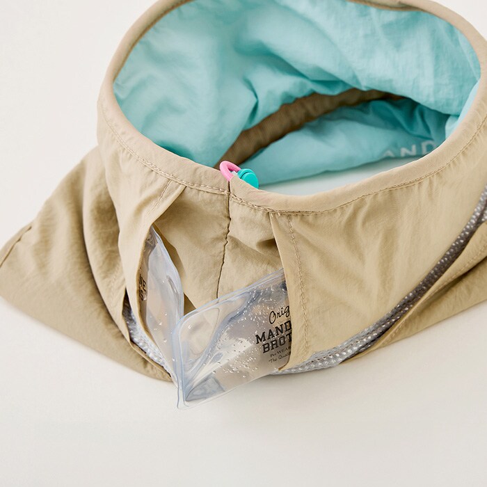 保冷剤を収納できるポケット付きで、効果的に冷やします。