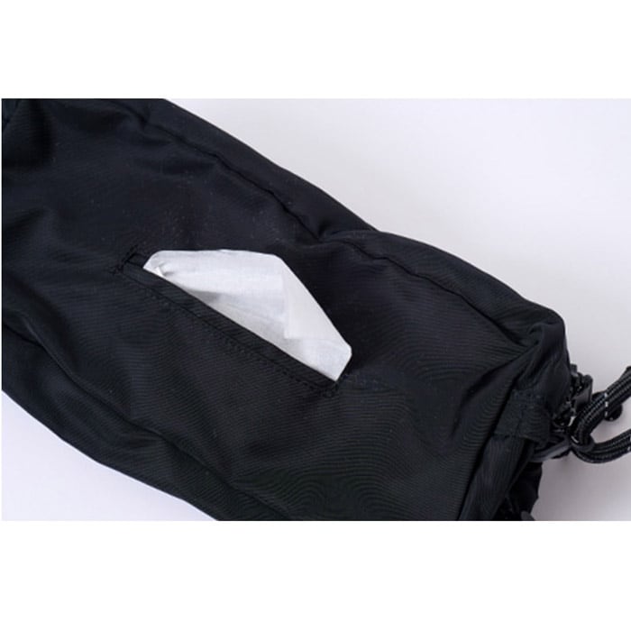 背面にはバッグを開かずに取り出せるティッシュケースを配置。