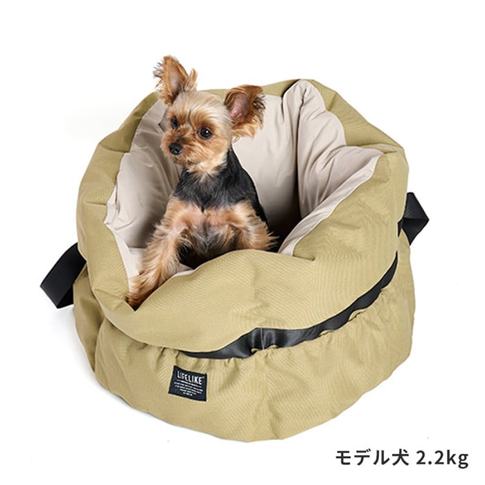 車のシートに固定できる、ペット用のドライブクッションベッド。