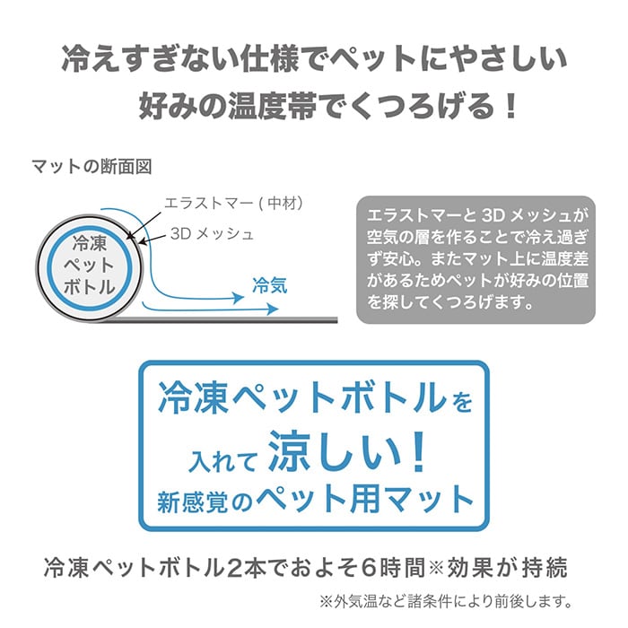 冷えすぎない仕様でペットにやさしく、好みの温度帯でくつろげます。