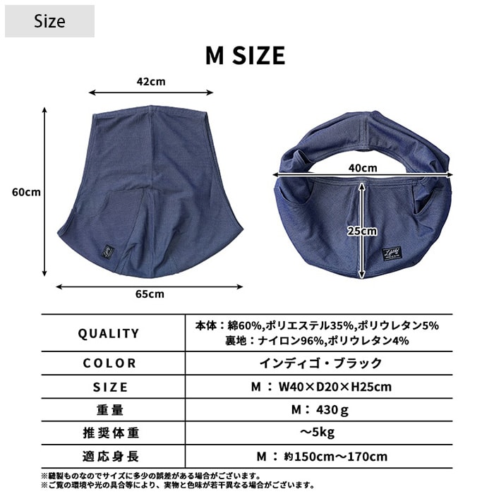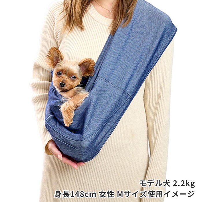ストレッチ性のあるデニムライク生地のペットスリング。