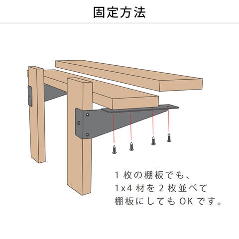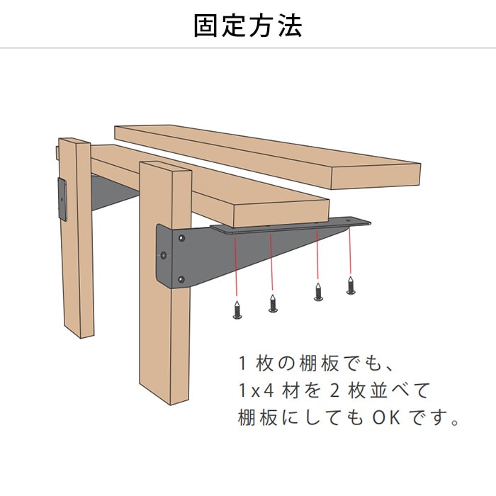 左右用に2点入っているため、こちらの製品1点で1枚棚板を設置できます。