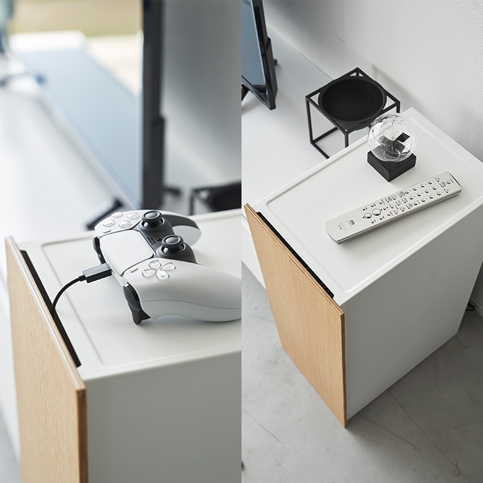 蓋との間にスリットがあり、充電しながら天板にコントローラーを一時置きできます。